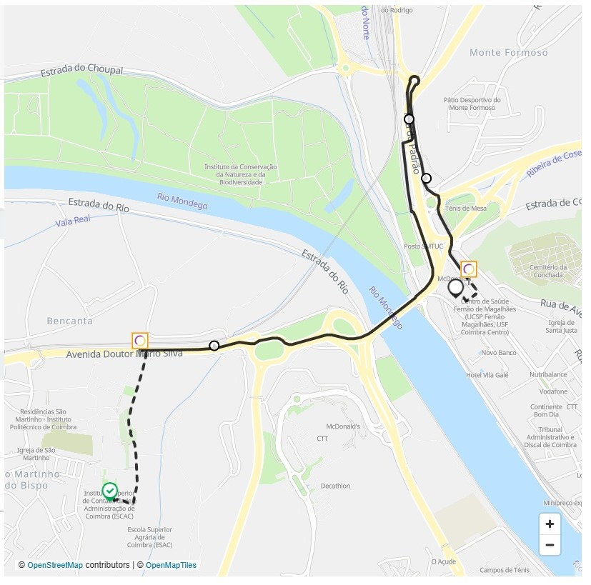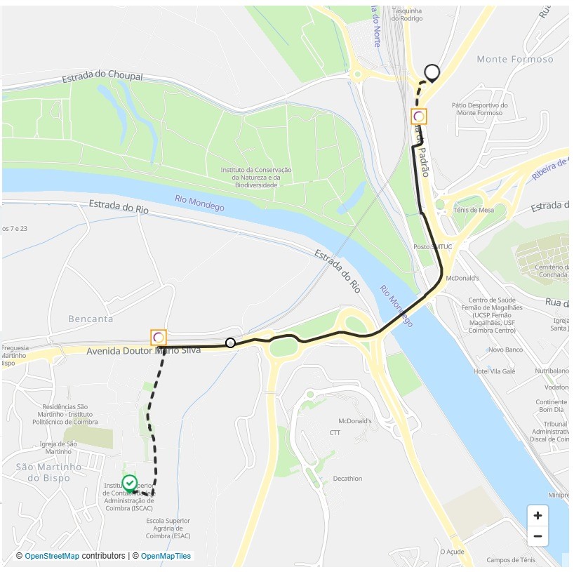 Do Terminal Rodoviário de Coimbra até ao Campus ESAC - ISCAC, o percurso pode ser efetuado do seguinte modo: